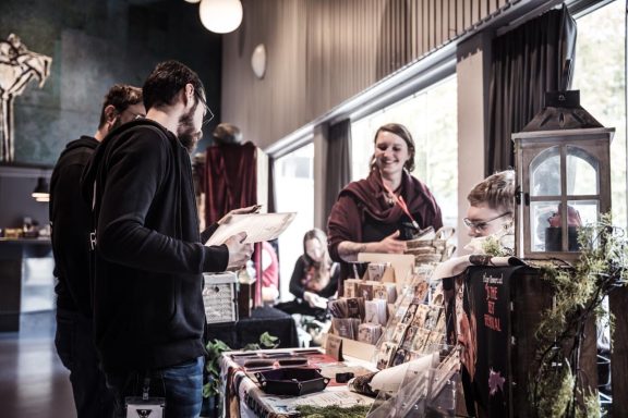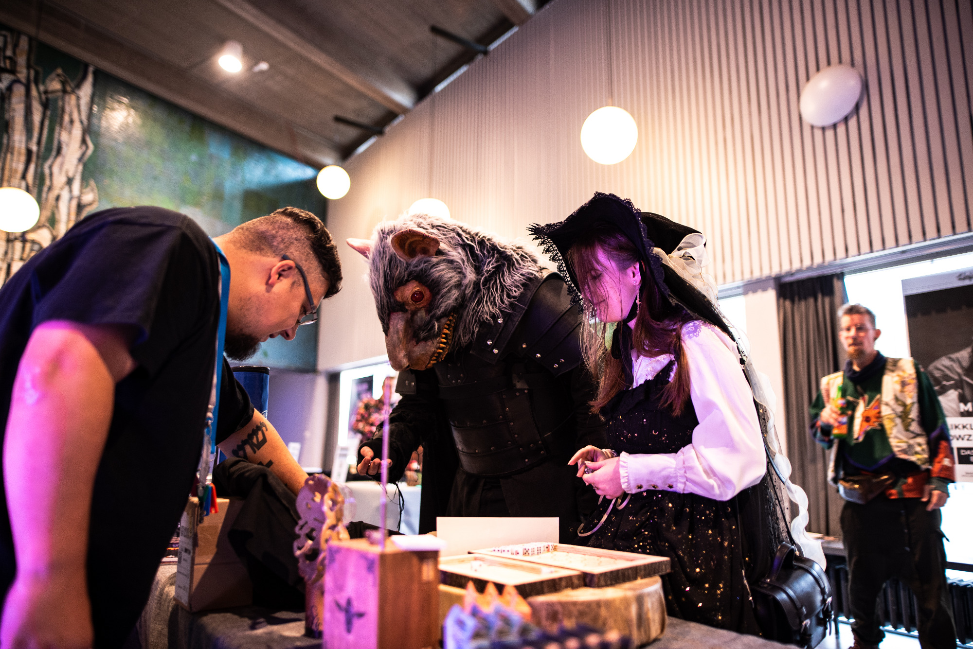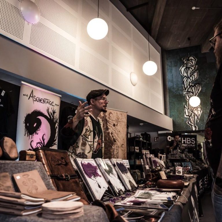 Zombiezeit begeisterte die Tabletop-Fans mit einer exklusiven Auswahl an Miniaturen, die allesamt in Deutschland gefertigt werden. Das neu gegründete Weltenwanderer Magazin präsentierte sich als frischer Geist in der deutschen Fantasy- und Rollenspiel-Szene. Die Redakteure standen für intensive Gespräche zur Verfügung und ließen die Besucher ihr neues Fanzine hautnah erleben. HBS Print-2-Play und Polyreels Studio deckten den Bereich 3D-Druck und Terrain ab. Während Polyreels mit praktischem Zubehör wie Tokens und Aufbewahrungsmöglichkeiten aufwartete, die direkt mit der Community entwickelt werden, überzeugte HBS mit nachhaltig produzierten, hochdetaillierten Miniaturen, Würfeltürmeen und Geländesets,. Für neue Spielwelten sorgte Nephilion mit seinem einzigartigen Pen-&-Paper-System, das Hard Science Fiction und High-Fantasy vereint – hier kämpfen Elfen mit Blastergewehren und Zwerge erkunden fremde Galaxien.Die liebevoll handgemachten Illustrationen von Wild Ling Art begeisterten Spielleiter und Sammler gleichermaßen.
